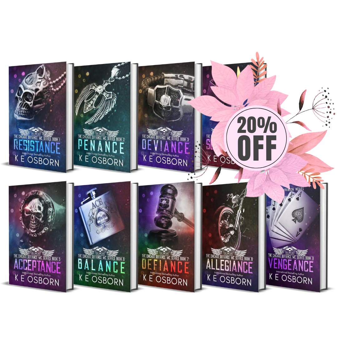 With so many pages of addictive MC Romance, you won’t be able to put down this exclusive boxset containing eight novels in the complete series of the Chicago Defiance MC, which includes the following books: