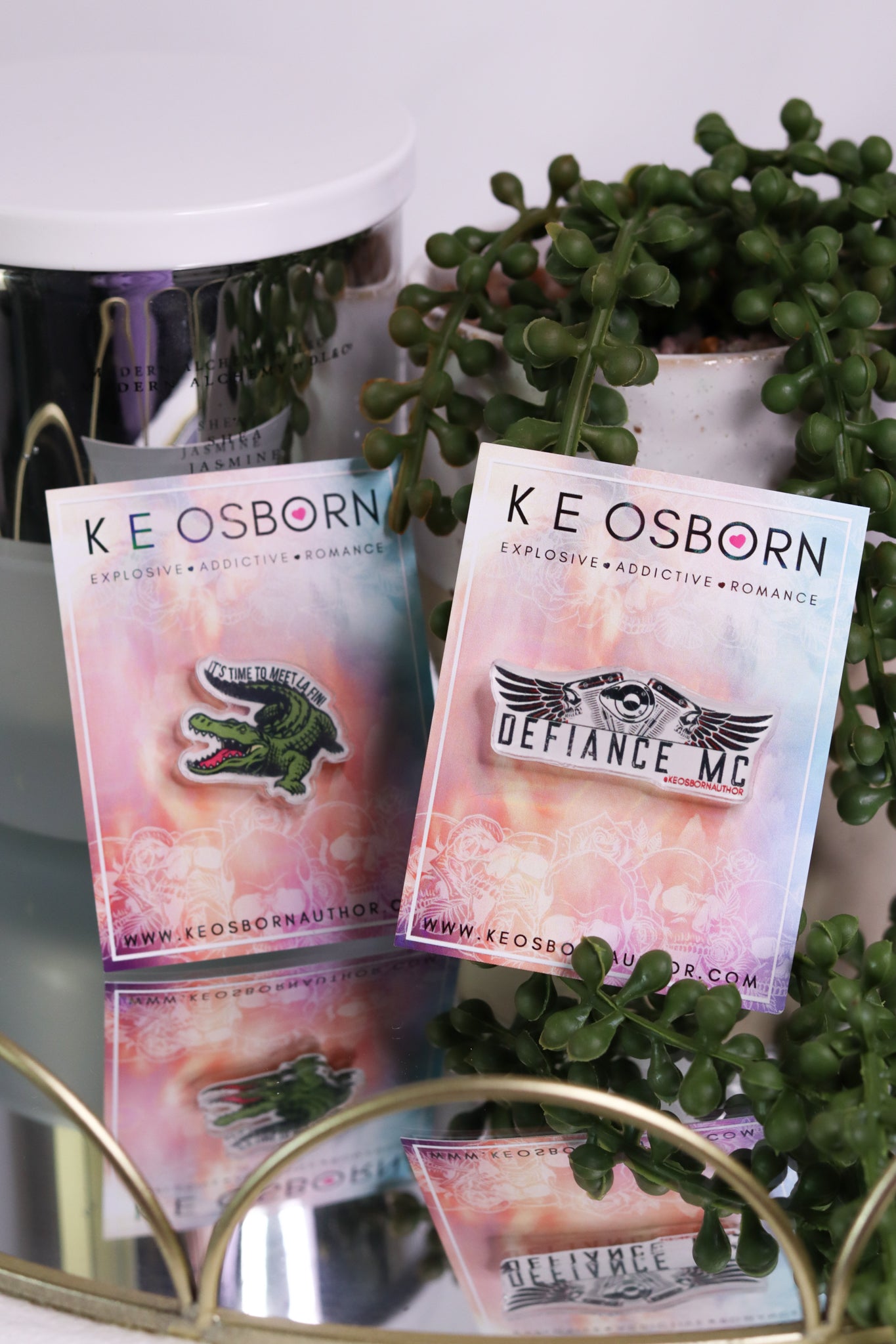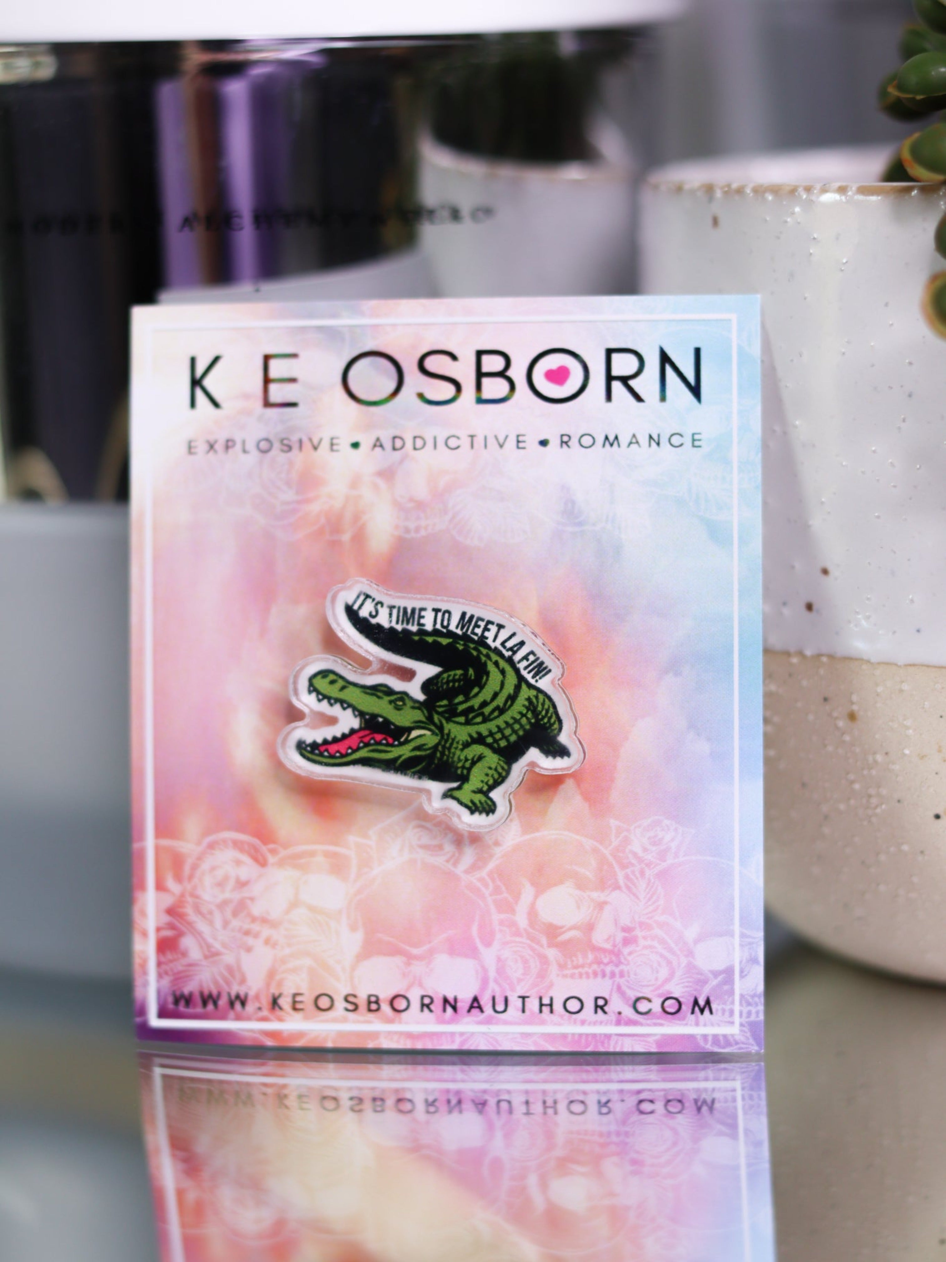 A lovely button pin featuring cut croc emblem. Made from high quality hard acrylic and silver toned metal detail.